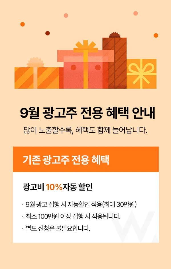 9월 광고비 100만 원 이상 집행 시, 10% 할인 적용
