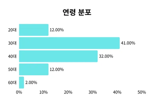 30대 (41%) & 40대 (32%) : 전체의 70% 이상을 차지, 안정적 소비력을 가진 주력 세대. 광고 집행 ROI가 높은 연령층.